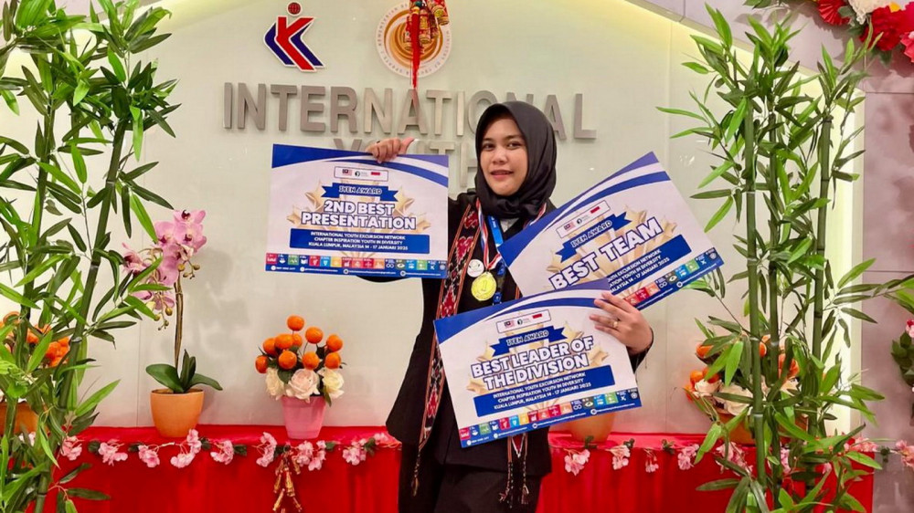 Ajeng Ar Rayhaani Cindy Hartono, usai terima penghargaan di ajang lomba “International Youth Excursion Network (IYEN) di Kuala Lumpur, Malaysia. (Aset: Istimewa)