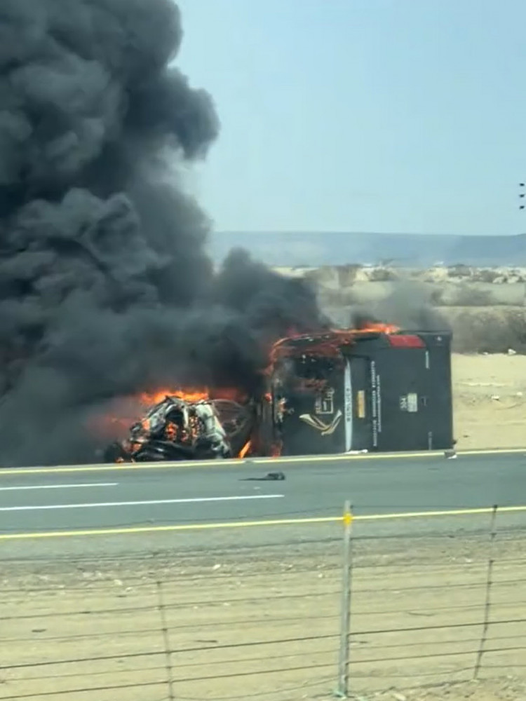 Bus yang ditumpangi jemaah umrah asal indonesia saat mengalami kecelakaan di Arab Saudi. Kamis (20/03/2025) (Aset: Istimewa)