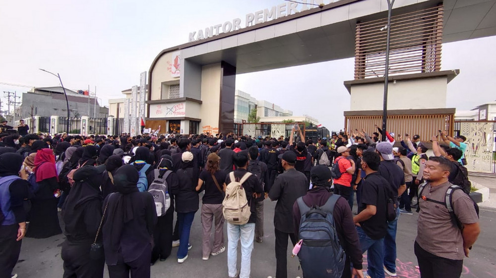 Ratusan pendemo tersebut berkumpul di depan Gedung Dewan Perwakilan Rakyat Daerah (DPRD) Bojonegoro dengan menggunakan baju hitam yang merupakan bentuk belasungkawa atas keputusan DPR RI yang telah mengesahkan Revisi Undang-Undang (UU) TNI. pada 20 Maret 2025 lalu.