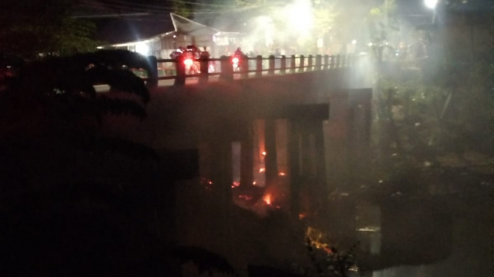 Kebakaran sampah di bawah Jembatan Kali Kening di Desa Sumberejo, Kecamatan Trucuk, Kabupaten Bojonegoro. Selasa (02/092025)  (Aset: Istimewa)