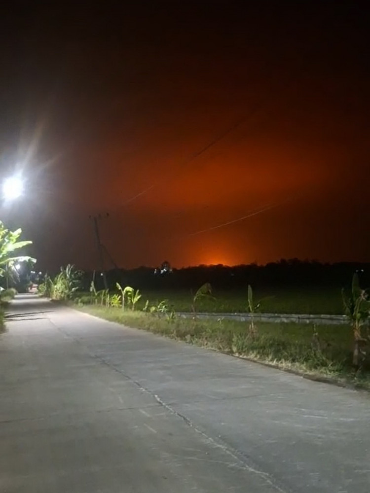 Suar api (flaring) di Lapangan Gas Jambaran-Tiung Biru (JTB) di Desa Bandungrejo, Kecamatan Ngasem, Kabupaten Bojonegoro, Jawa Timur yang terpantau membesar. Senin malam (15/09/2025) (Aset: Istimewa)