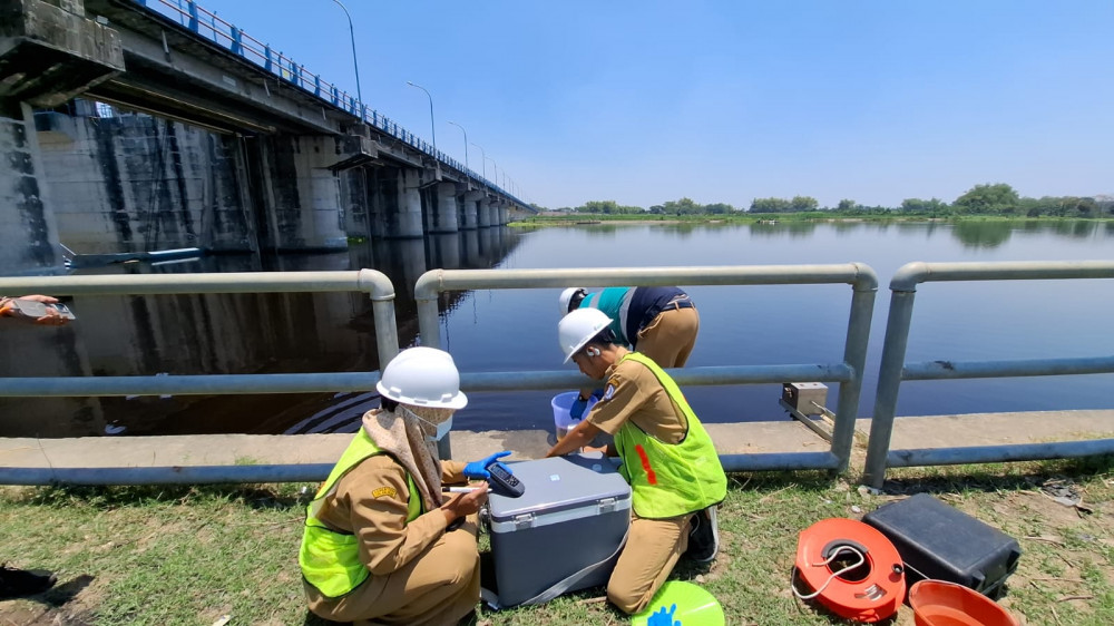 Dinas Lingkungan Hidup (DLH) Kabupaten Bojonegoro juga telah menerjunkan petugas untuk melakukan uji sampling kualitas air Sungai Bengawan Solo di Bendung Gerak.