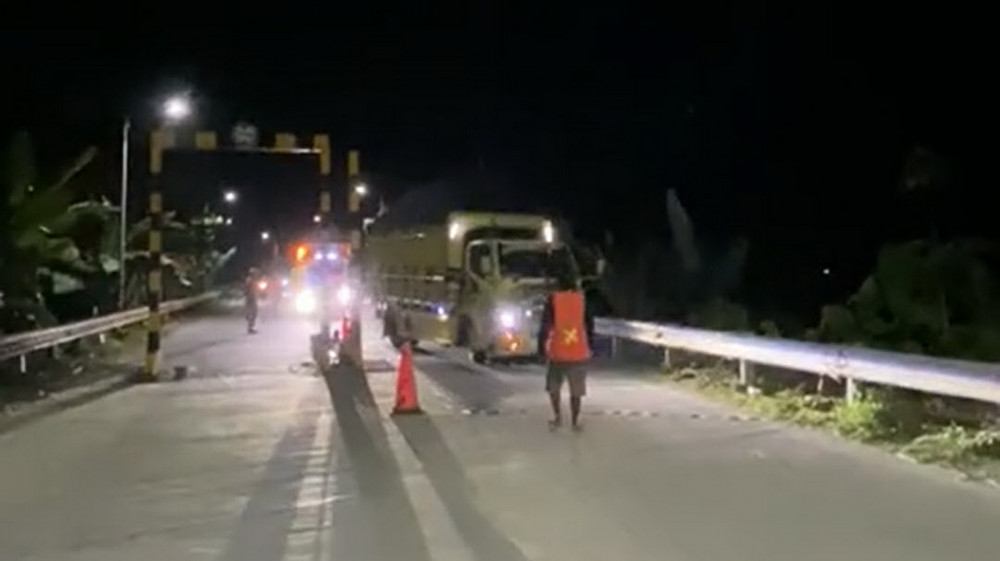 Dalam video yang beredar tersebut, tampak beberapa warga mengenakan rompi oranye berjaga di sekitar portal dan mengatur kendaraan truk yang hendak melintas.