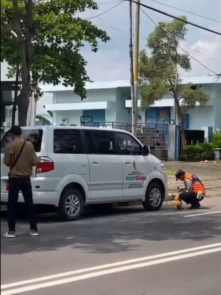 Mobil siaga desa tersebut sedang parkir di Jalan Veteran, tepatnya di depan Rumah Sakit Umum Daerah (RSUD) dr R Sosodoro Djatikoesoemo, Bojonegoro.