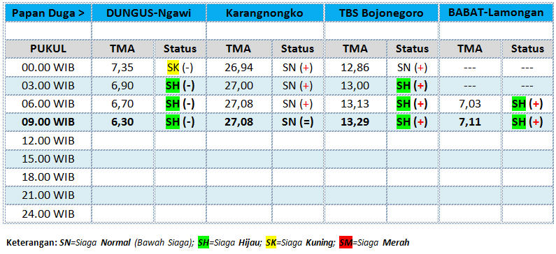 Berikut ini update status TMA Bengawan Solo, yang diterima BBC (BeritaBojonegoro.com) dari UPT Pengelola Sumber Daya Air (UPT PSDA) Wilayah Sungai Bengawan Solo untuk tanggal 13 Maret 2016, hingga pukul 09.00 WIB. (lyn/ inc).