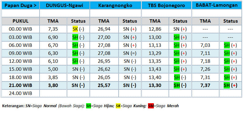 Berikut ini update status TMA Bengawan Solo, yang diterima BBC (BeritaBojonegoro.com) dari UPT Pengelola Sumber Daya Air (UPT PSDA) Wilayah Sungai Bengawan Solo untuk tanggal 13 Maret 2016, hingga pukul 21.00 WIB. (lyn/ inc).