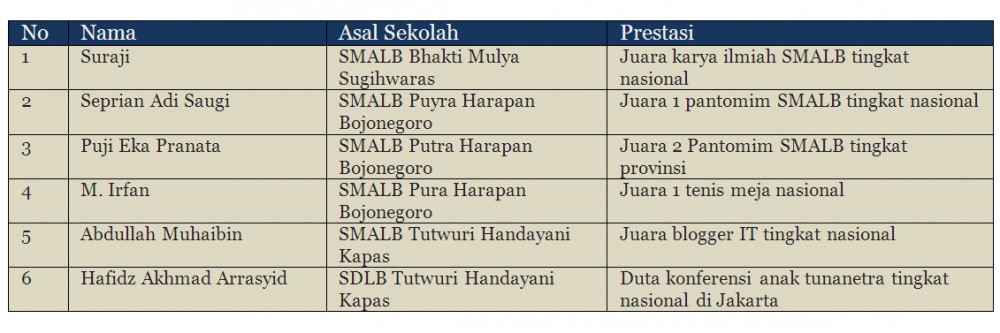 Prestasi Pendidikan Luar Biasa (PLB) Kabupaten Bojonegoro tahun 2015