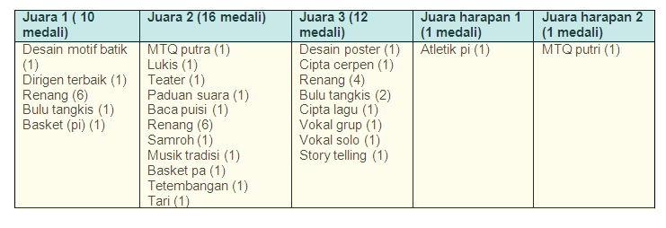 Untuk SMPN 1 Bojonegoro sendiri, menurutnya perolehan medali pada tahun ini sudah cukup baik dan telah memenuhi target seperti tahun sebelumnya. '' Alhamdulillah sudah,'' ujar Ufar.