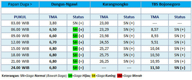 Berikut ini update status TMA Bengawan Solo, yang diterima BBC (BeritaBojonegoro.com) dari UPT Pengelola Sumber Daya Air (UPT PSDA) Wilayah Sungai Bengawan Solo untuk tanggal 19 Juni 2016, hingga pukul 24.00 WIB. (her/ inc)