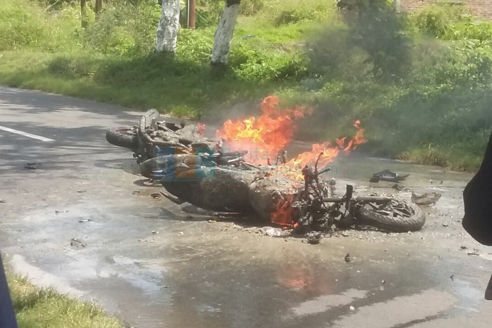Dua Sepeda Motor Terbakar Setelah Bertabrakan di Dander