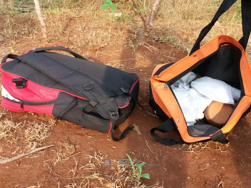 Setelah diperiksa, di lokasi itu memang tergeletak 2 tas, yakni tas punggung berwarna merah kombinasi hitam dan tas selempang warna hitam kombinasi oranye. Kemudian ketika dibuka kedua tas ini, cukup mengejutkan karena isinya 4 pocong mori.