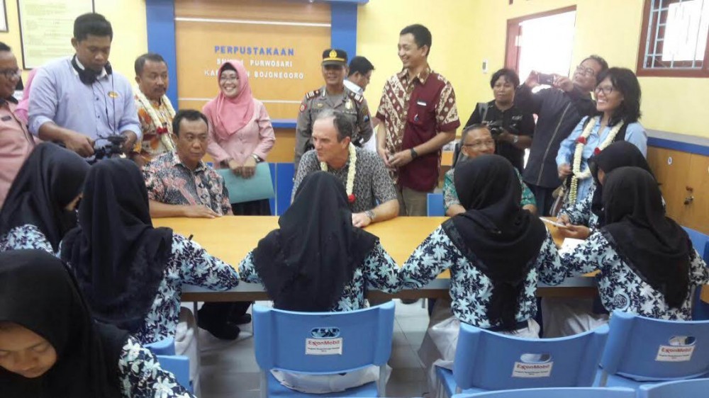 Foto : Manajer Aset EMCL Paul Kent sedang berbincang hangat dengan siswa SMKN Purwosari di ruang perpustakaan
