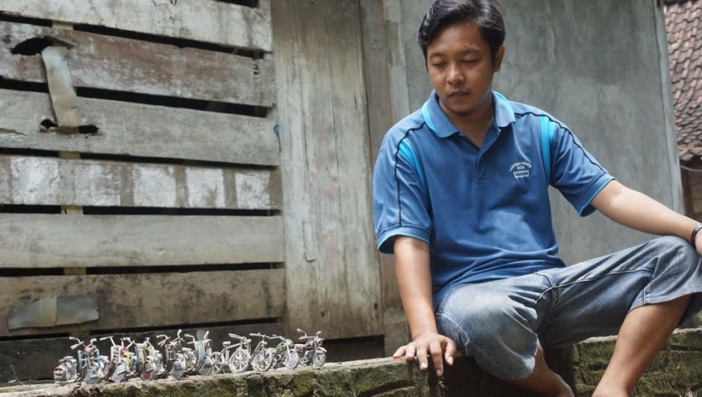Ngraho - Tangan dingin lelaki ini tidak boleh diremehkan. Melalui sentuhan sentuhan ajaibnya, barang rongsokan bisa disulapnya menjadi karya seni yang cantik. Miniatur aneka barang seperti sepeda motor vespa, motor sport, sepeda angin, motor CB, becak bahkan kapal laut yang berukuran besar mempercantik keberadaan rumahnya yang sederhana. Semua itu hasil sulapan lelaki itu dari koran bekas.
