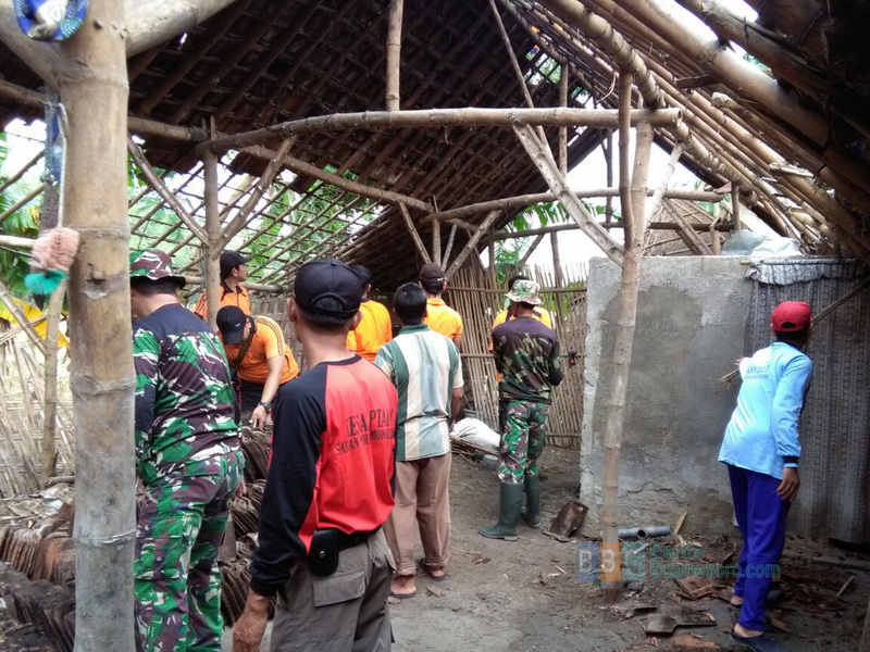 Karena itu, untuk meringankan beban warga yang terkena musibah, Polsek Balen bersama Koramil, Pemerintah Kecamatan, perangkat desa, serta warga Desa Kedungdowo melaksanakan kerja bakti memperbaiki rumah warga yang rusak, Sabtu (10/12/2016) pagi.