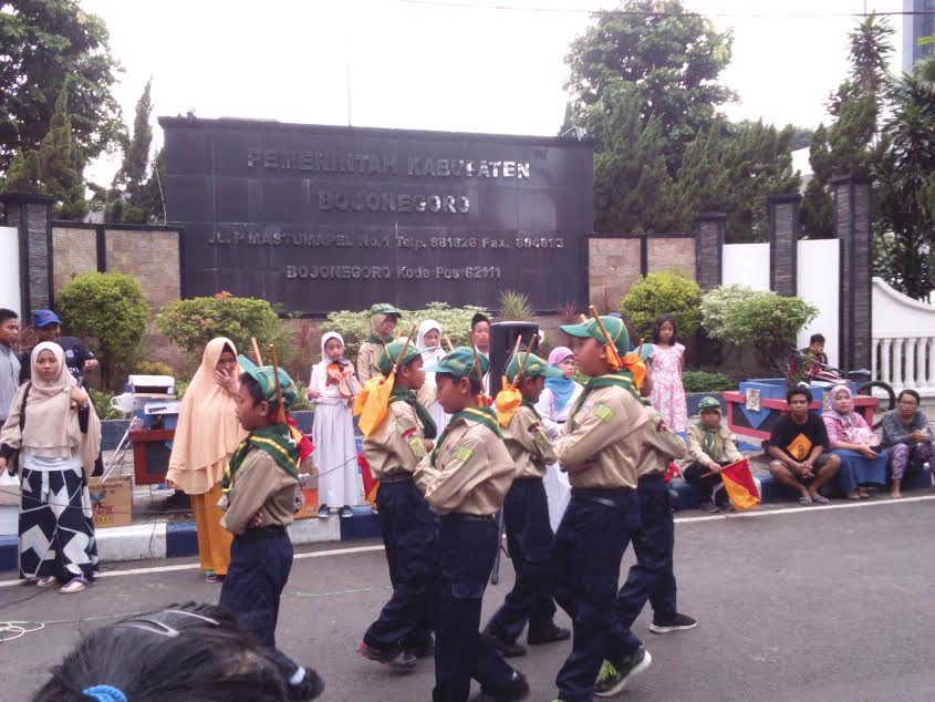 Nampak oleh pantauan beritabojonegoro.com (BBC) di lokasi, pada sejumlah enam anak berseragam hizbul wathan (Gerakan Kepanduan Muhammadiyah), dengan kedua tangan memegang bendera. Diiringi musik, mereka berlenggak lenggok sambil menggerakkan bendera yang membentuk alphabet sandi semaphore. Tentu saja hal ini memancing perhatian warga yang sedang memanfaatkan waktu CFD. Mereka yang berlari keliling alun-alun, berhenti menyaksikan kepiawaian anak-anak itu.