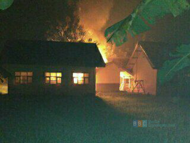 Ngasem - Kebakaran hebat terjadi di SMP Negeri 1 Ngasem Kabupaten Bojonegoro, Minggu (08/01/2017) malam ini. Kobaran api melalap seluruh bagian dan perabotan kantin sekolah. Bahkan juga merambat hingga menghanguskan sebagian ruang kelas VII H.