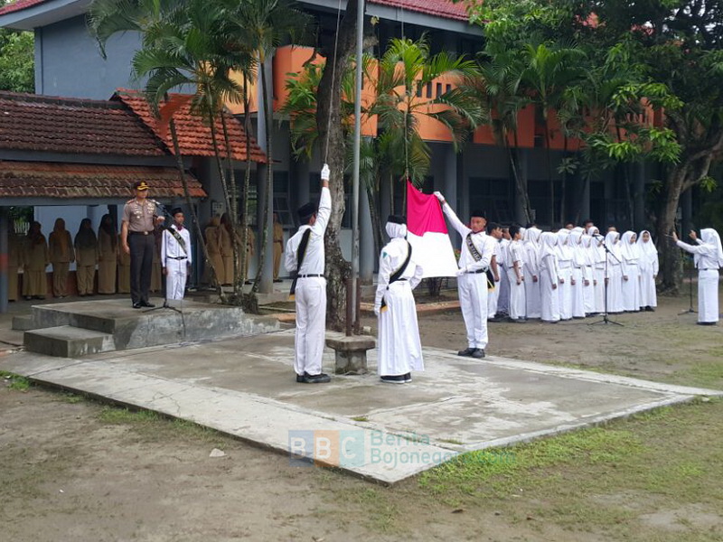 Bojonegoro Kota - Kapolres Bojonegoro AKBP Wahyu Sri Bintoro SH SIK MSi pagi tadi, Senin (30/01/2017), menjadi Pembina Upacara di SMK Negeri 2 Bojonegoro. Kegiatan yang bertujuan untuk lebih mendekatkan polisi dengan pelajar ini merupakan program rutin Kapolres.
